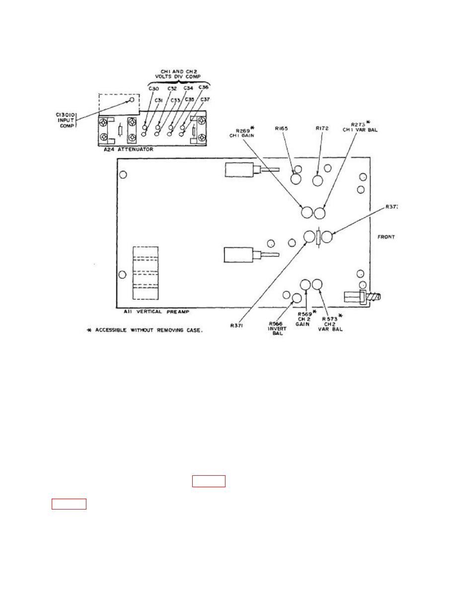 (3) Set oscilloscope calibrator for a CHAN 2, VOLTAGE mode output of 30 mV and